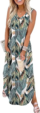 Sampeel Women’s Summer Maxi Beach Dress with Pockets